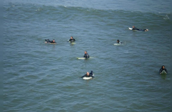 spazieren, schauen den vielen Surfern zu die in dem sicher kalten Wasser ihrem Hobby frönen, schlendern auf das Pier